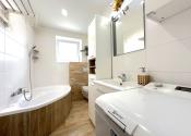 Kúpeľňa: Štýlová kúpeľňa s rohovou vaňou.