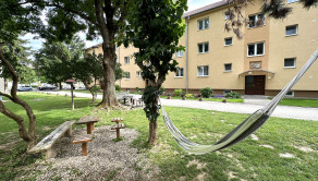 Výhľad: priamo do dvora s krásnou udržiavanou zeleňou a miestom pre relax s posedením.