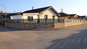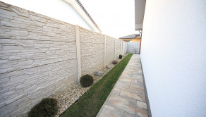 O vstup do domu sa stará brána na diaľkové ovládanie. Oplotenie okolo domu je z hliníkových profilov a skombinované s dielcami okolo terasy, aby zabezpečilo súkromie a príjemné chvíle strávené na terase. O trávnik sa stará automatická závlaha. Dom je napojený na inžinierske siete ako elektrina, vodovod a kanalizácia.