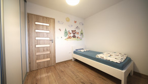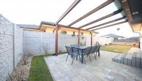4 samostatné izby vám poskytujú dostatok súkromia aj priestor pre celú rodinu. Obývacia izba je prepojená s kuchyňou a priamym výstupom na prekrytú terasu. V zariadení domu ostáva vstavaný nábytok v rodičovskej spálni, detskej izbe, predsieni, obývačke a v kuchyni so vstavanými prémiovými spotrebičmi.