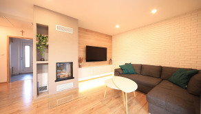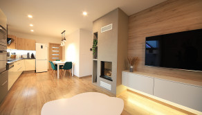 V dome je podlahové vykurovanie s reguláciou v každej miestnosti a zároveň teplo domova vám spríjemní krb v obývačke, ktorý je prepojený s prieduchmi do každej izby.